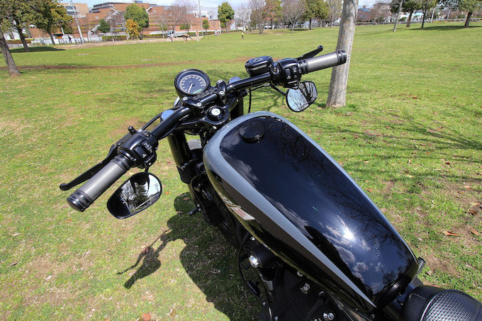 タイトなポジションを演出するオリジナルのドラッグバーがフォーティーエイトの低さを更に強調している。