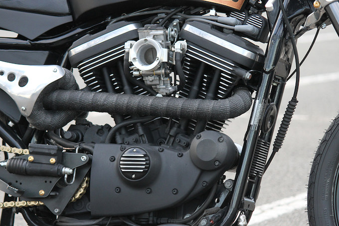 このマシンをプロデュースしたのは埼玉・川越のバイクペイントカンパニー『TMガレージ』代表の橋本 崇さんで、自身のネットワークを活かしてハーレーのカスタムシーンに関わる一流どころの技術や創造性を取り入れた、アイディアの集合体のようなカフェレーサー・スポーツスターなのだ。