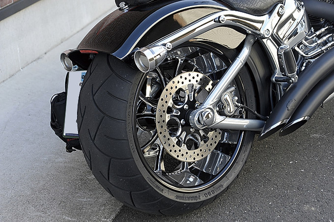 よく見ていくと、オリジナルの個性はまったく捨てないで、効果的にモディファイしていることが分かる。ガソリンタンクやフレームの形状、ヘッドライトナセル、リアフェンダーなどはストックのままなのである。ストックでも超一流のカスタムとして大きな存在感を示すブレイクアウトCVOだからこそ、自分だけの個性的な1台に仕上げるのは大変なことである。
