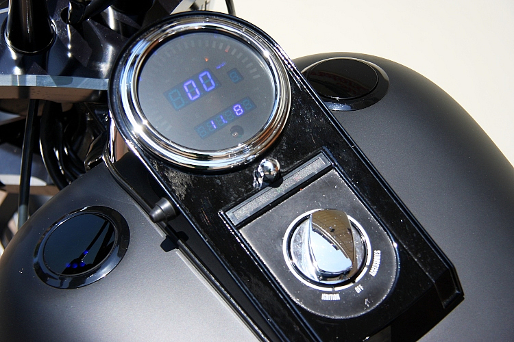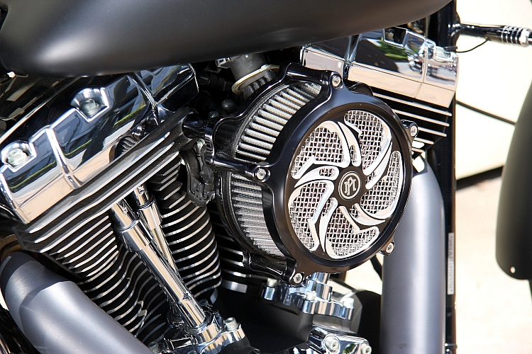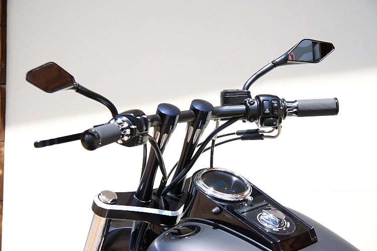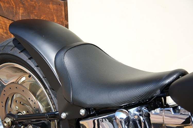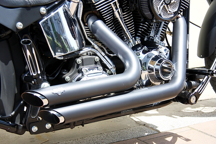 サンモーターサイクルズが製作したのは、FXSTC ソフテイルカスタムをベースにしたハイテックチョッパーだ。エキゾーストやエアクリーナー、そしてハンドルまわりにシートなどがカスタムされ、よりスタイリッシュなフォルムが形成されており、高いまとまりを見せている。しかし、このマシンももちろんオーナーの予算内で組まれたものであり、ビルダー立岡氏は、そのなかでいかに完成度の高いものを作り上げるかに注力したという。