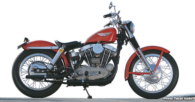 フラットトラックレーサーとして極少数生産された50年代後半のXLRがモチーフとなる、こちらのXLCH。タンクに映えるチェッカーフラッグのデカールが主張するコンペティションホットモデル。パルシブな爆発を伴う伸びやかな加速フィーリングは、残念ながらビッグツインモデルでは味わえない世界と言える。ご覧のXLCHはエンジンのオーバーホールをはじめ、エクステリアのペイントなどレストアが施された車両であるが、その唯一無二の存在感はご覧の通りである。