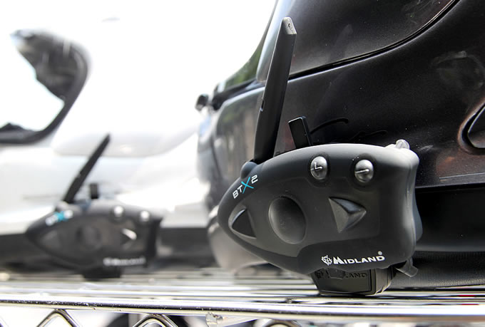 現在のインカム市場にはさまざまなメーカーの製品が投入されているが、そのなかでも注目したいのは、今回紹介するイタリアのメーカー「MIDLAND」(ミッドランド)社製のBTシリーズだ。ワイヤレスでのステレオミュージック対応可、高速での高音質なオーディオクオリティ、GPSナビとの接続が可能など、スタンダードな機能を持つのは当然のこと。このBTシリーズのスゴいところは、同社製品はもちろん、他社ブランドとのインターカム通話が可能なことである。チームのメンバーが使用しているインカムが別々のものだと整合性がとれないということも起こりえるが、このMIDLAND BTシリーズなら心配無用、というわけだ。
