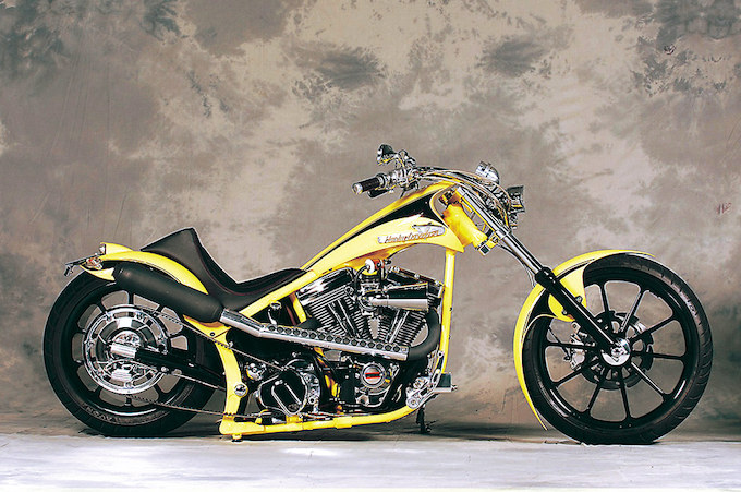 「ジャパドラがワイドタイヤを履くとこうなる」と笑顔で応えるビルダー小川。ノーマルフレームでのカスタムは同ショップのこだわり。遊び心満点のタンク、フェンダーといったエクステリアはイエローとブラックのツートンカラーでペイント。国内カスタムショップの重鎮だけに、観衆を沸かすショーバイクのポイントを抑えたフォルムである。オーナー/NAMIKI