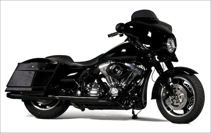「HD-BAGGERS」のその名の通り、バガーカスタムが神髄のこのショップ。2009年式のストリートグライドをベースにオリジナルパーツを装着し、シンプルなバガースタイルに製作。ストックスタイルを手軽にモディファイできるR-フェアリングやR-アンダーフェアリング、近日リリース予定のサドルバッグリッドにも注目したい。ブラックで統一されたエクステリアのカラーリングが同店のアイコンとなるマシンである。オーナー/福田博之