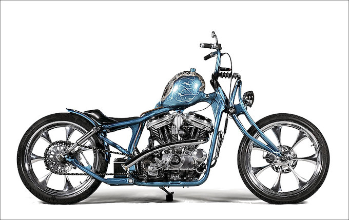 スポーツスター1200のフレームを生かしてオリジナルガーターフォークが装着されたこのマシン。フロントショックアブソーバーにはマウンテンバイク用を装着、リアサスペンションの構造も非常に個性的だ。ラウンドタイプのフューエルタンクが、いかにもCWZらしい。エキセントリックなマシンであるが、オートバイとしての機能性にも抜かりなし。モディファイドH-DのCREATIVITY部門で見事に勝利を飾った。オーナー/SEKOBITCH