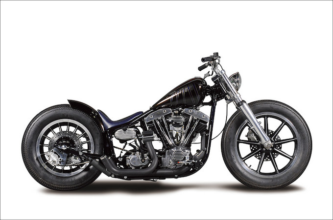 1978年式のショベルがベースとなるヴィダの力作がコチラ。2インチエクステンドされた丸パイプスイングアームとソフテイル用サスペンションをインストールすることで4速フレームを用いながらも驚異的に低いグランドクリアランスを実現。同店の高い技術力が感じられるモディファイと言えるだろう。オーナー/安永卓矢