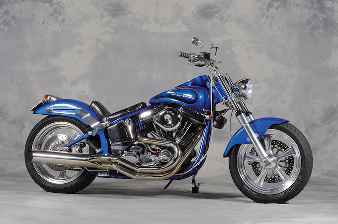 オーナーが神戸モトコムのサポートを受け製作したという1996年式のFLSTN。外装のみならず内燃機にもじっくりと手が入っている力作である。サンダンスのコブラシリーズにインスパイアされ、プロジェクトがスタート。外装&フレームはブルーメタリックにカスタムペイント。眺めてよし、走ってよしのカスタムマシンに仕上げられている。オーナー/後藤裕哉