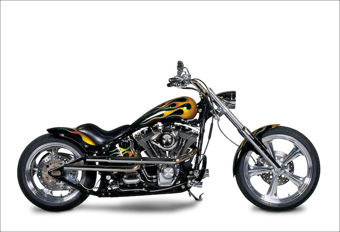 紫雲クラフトワークス製作による2000年式ヘリテイジベースのカスタムマシンを紹介しよう。オーナーである川野さん自身による個人出展車両である。個人での出展が多いのもチョッパーショーたるニューオーダーの特徴と言えるだろう。均整の取れた美しいスタイリングは紫雲ならではのもの。フューエルタンクの上面にはオリジナルアクセサリーのブランド名が描かれている。オーナー/川野勝清