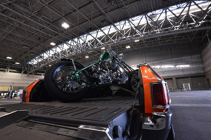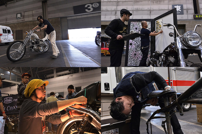 例年通り、ショー開催前日の土曜日が搬入日に割り当てられたわけだが、全国からここ名古屋にカスタムマシンが集結し、ショーの準備が進められた。