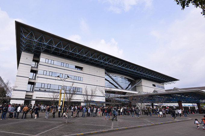 朝10時のゲートオープンにも関わらず、9時の段階でかるく1000人は超える来場者の長蛇の列が! これによりゲートオープンは15分繰り上げられた。