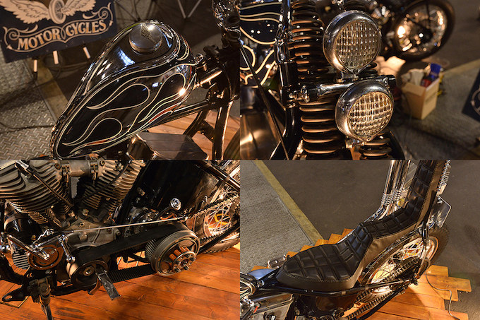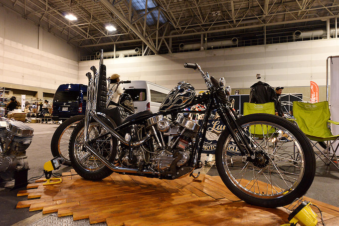 バドロータスが持ち込んだショベルカスタム。同店らしい徹底した作り込みが随所に見受けられるマシンである。