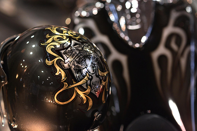 ヘルメットのカスタムペイントとマシンをコーディネイト。カスタムペイントの底力を感じさせる演出である。