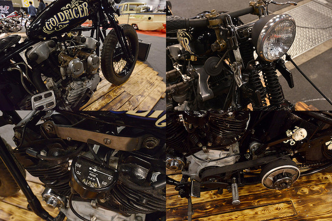 広島から駆けつけたカスタムファクトリーBBが手掛けたフルスクラッチカスタム。独自の和テイストが炸裂した一台にフィニッシュ。