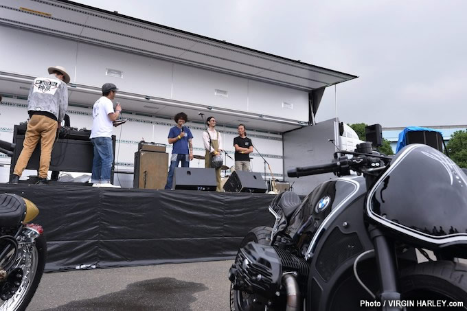 28メインステージではR nineTカスタムプロジェクトの参加ビルダー、チェリーズの黒須さん、ヒデモのヒデ、そして46ワークスの中嶋さんのトークショーが行われた。