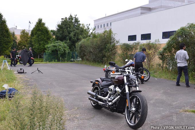 06新型ソフテイルの国内初となる公道試乗会ということもあり、参加したメディアの方々も精力的に試乗を行っていた。ストリートボブに乗るのは雑誌アウトライダーの菅生編集長、ファットボブに乗るのは同編集部の西野さん。