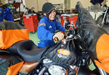 今回はビッグツインエンジンの脱着授業をご紹介します。この授業では、安全で正確な整備作業ができるようになることを目的とします。整備をするとき、エンジン、トランスミッション、サスペンションなどを降ろして作業することがあります。これら重整備を行うときは、自分と周囲の安全に十分注意をして行うことが重要になります。エンジンを降ろす前に正常に機能しているかどうかチェックが必要です。エンジンはガソリンと空気を圧縮させ、これに電気火花で点火し、燃焼させることによって動力を発生させています。ここでまず“コンプレッションゲージ”なる測定器を使用して、圧縮の数値が規定値内にあるかどうかを点検します。