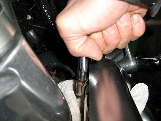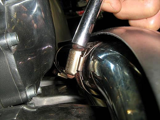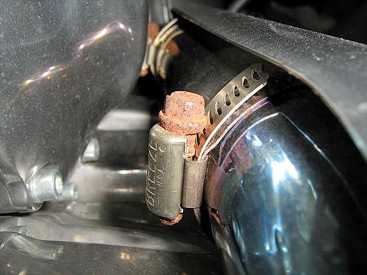 ここまで錆びていると、少し無理をするとズルズルっとなめってしまいます。よくある症例では、「無理にボルトを回してなめらせてしまい、右にも左にも回らなくなる」ケース。今回はヒートシールドのクランプですので、致命傷は避けられますが、フランジボルト(エキゾーストパイプの根元)などで失敗すると思わぬしっぺ返しを喰らうことも…。こういったときは、焦らずきちんと下準備をすることです。