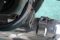 さらにリアシリンダーから伸びるエキパイを保護するマフラーガードも脱落。エキパイには固定するためのバンドが残っており、バンドとガードを繋ぐ溶接が外れてしまったことがわかる。エキパイはバックギアを避けるために潰されている。
