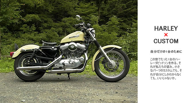 「イメージしたのは1957年式の初代スポーツスターです。カスタムについて悩んでいたときに雑誌で見かけて『あ、コレだ!』と思いましたね。自分と生まれた歳も近いモデルで親近感も湧きましたし」。