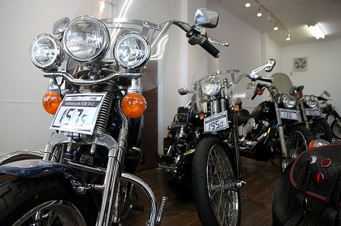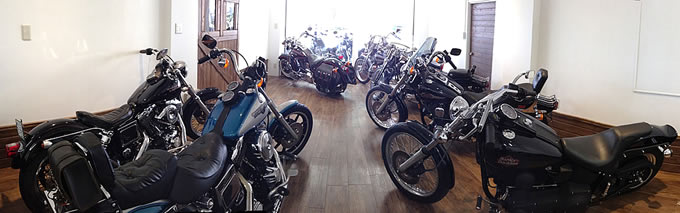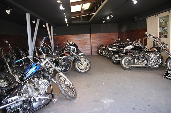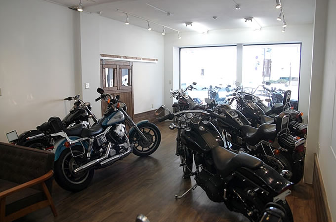 そんなモーターガレージグッズがハーレーを取り扱うようになったのは、ここ数年のことだそう。モデルの幅は旧車からインジェクションを搭載した現行の高年式モデルまでと幅広い。「僕自身が、高年式のダイナが好きなんですよ。今は車両販売が主になっているんですが、店頭には割りと高年式モデルが並んでいるんですよね」と語るのは、代表の丸本 浩史氏。好みが高じて……というわけではないが、今年、インジェクションモデルの性能を引き出すサービスを展開すべく、ダイノジェット社製のシャーシダイナモを導入するなど、ハーレー市場へに対して積極的にアプローチをしていく予定だ。