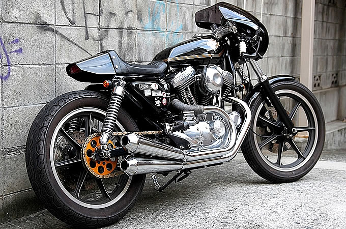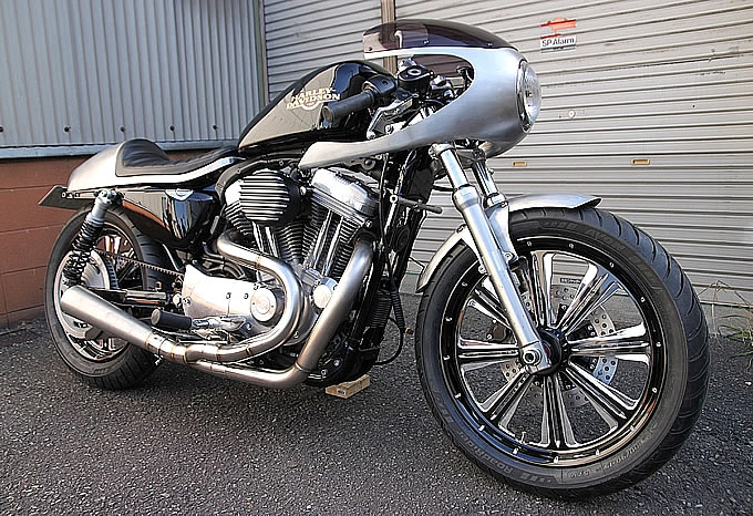 その施策のひとつとして、2013年大阪モーターサイクルショーに出展を決定。持ち込んだのは、グッズらしいコンセプトからカフェレーサースタイルにカスタマイズした 2008年式 スポーツスター XL883。「あくまでコンセプトモデル。カフェレーサー カスタムは僕らの得意とするスタイルなので、これを軸にパーツ開発などを展開していきたい」(丸本氏)。実際、このカフェレーサー XL883 に組み込まれたビキニカウルやフェンダー一体型シートなど、すでに量産していくそうだ。ここにインジェクションチューニングというメニューが組み込まれるのだから、これ以上なく楽しく快適に走れるカフェ スポーツバイクが生み出されることだろう。関西圏の現行モデルオーナーには朗報とも言える参戦だ。