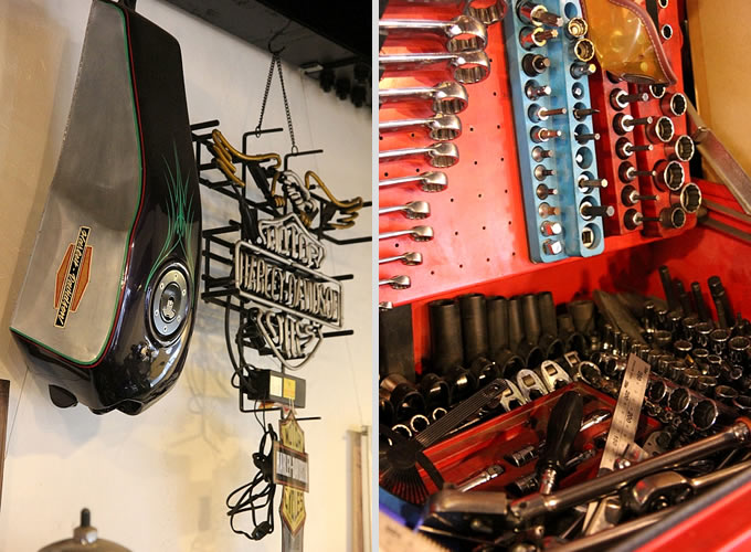 ハーレーであれば新旧関係なくなんでも取り扱うブラッククロームは、週末になるとさまざまなタイプのハーレーオーナーがショップへと集まってき、松本さんを中心に談笑の輪が広がっていく。人当たりがよく、いつも笑顔の松本さんの人柄がそんな輪を生み出しているのだろう。実際、ブラッククロームの根強いファンも多いと聞く。