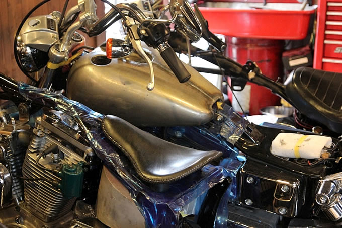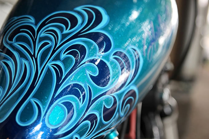「ハーレーのカスタムと言えば、王道はチョッパーですよね。もちろんウチでもチョッパーカスタムもやりますが、以前勤めていたショップでの経験から、“速いハーレー”、つまりパフォーマンスに秀でたハーレーを作るのも好きなんですよ」