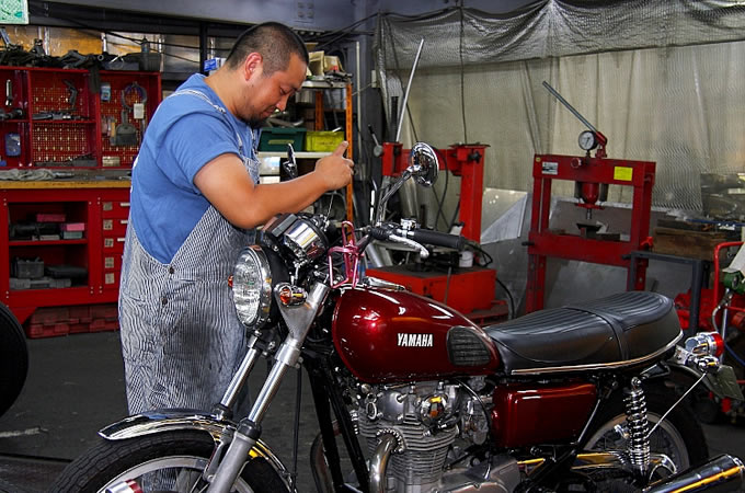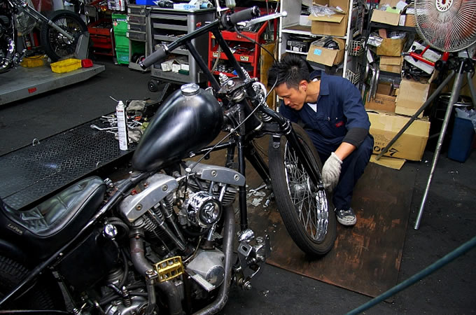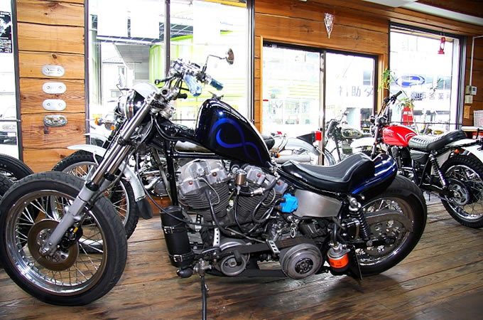 得意とするスタイルはSRやトライアンフなどのストリートカスタムをフィードバックさせたストリートチョッパー。店長以下、若いスタッフのセンスが存分に発揮されたハーレーは軽快なイメージで、広島の街によく似合う。また、先日紹介したパンヘッド風 FLSTFのように、定番のスタイルも手がける。