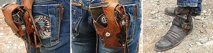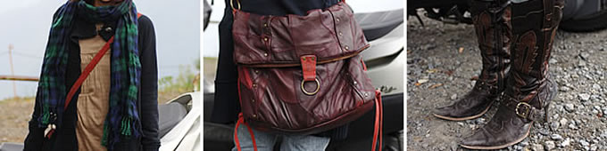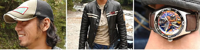 ご自身に合ったサイジングが完璧です。小物使いも非常にうまいですし。ウェアから小物までバイクメーカーが造ってる物は一切無く、バイクを降りても違和感無く街へ溶け込めます。街やツーリング先で見掛けるブラックカラー中心のハーレー乗りとは、また違った個性があって好感が持てますね。