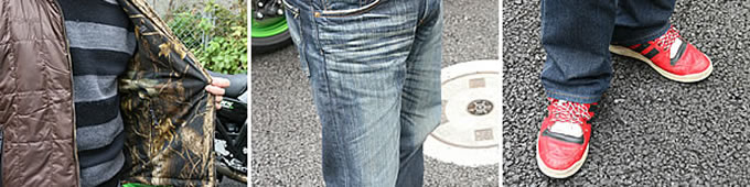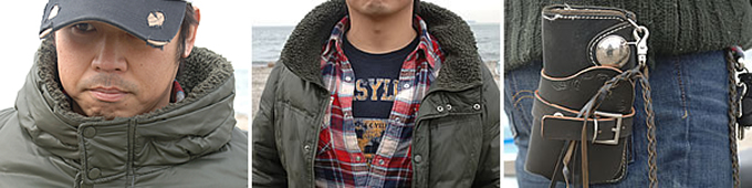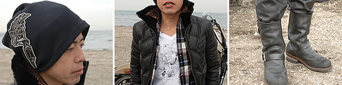 電熱ウェアは邪道だ!と言い切る林さん(笑)。この季節、映画“ターミーネーター”のシュワちゃんのように全身レザーで固めているハーレー乗りが多い中、バイクから離れても違和感が無いスタイルに好感が持てます。人と同じ格好ではツマラナイですから。今季トレンドのチェックシャツも取り入れ て、オシャレにコーデされていますよ。