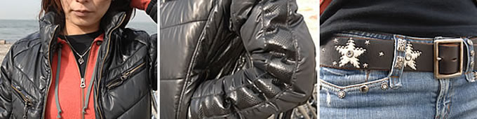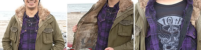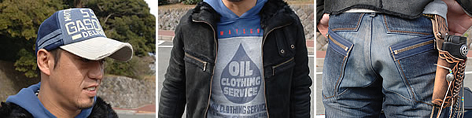 いい具合に力の抜けたカッコよさが、絶妙な着こなしですね。サイジング、カラーチョイスともにGOODです。ラムスキンのジャケットは強靭さに欠けますが、柔らかい素材なためライディング姿勢でも窮屈感がなくてイイですよね。またダブルフェイスで保温性もいいですから、寒い時期にはオススメです。