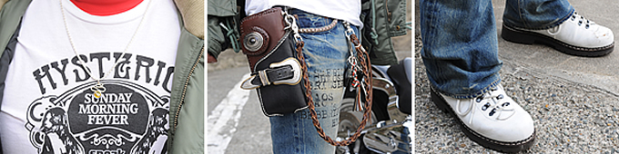 いよいよ春が近づいてきて、カスタムや、ツーリングアイテムなどいろいろと物欲が出てきますね。でも、ちゃんと服にも投資してくださいよ~。さてさて。今回は神奈川県にあるハーレーショップ「 CRYSTAL AUTO 」さんの主催するツーリング(参加者80人以上!)にて、ファッションチェックを行わせていただきました。さすがにコダワリのカスタム車がたくさんでしたが、ここはファッション講座ですから、着こなし重視で取材させていただきました。さて、それでは今月もファッションチェックいってみましょう。