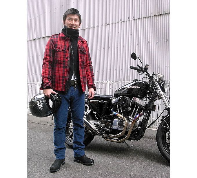 今回こうして眞木さんに上から下までコーディネートしていただきましたが、普段はあまりチョイスしないウェアなのですごく新鮮ですね。バイクに乗るときはブーツは必須で、そこからデニムやアーミー系のものを着たりしています。特に操作時、体の動きを妨げないものを選ぶようにしています。ヘルメットも最近はもっぱらフルフェイスです。