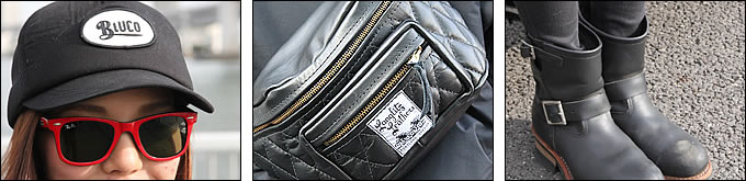 そして、注目してもらいたいのがブランドチョイス! この写真を拝見しますと、“Ray Ban”のサングラスや“Bluco”のキャップ、“Langlitz Leathers”のバックと、男性のハーレー乗りには定番のブランドなのですが、女性の場合、どうしても取り入れにくいブランドかもしれません。しかしながら、秋山さんはこのブランドを見事に取り入れてご自身のものにしていますね。全体のサイズ感もお見事! インナーに首元が開いたボーダーをチョイスされている点も、“女性らしさ”と“バイカーらしさ”がミックスされています。以前にご登場くださった 鎌田順子さん と比べると正反対のコーディネートになるのですが、お二人ともバイクとの一体感と女性らしさというところでは、とても参考になると思います。