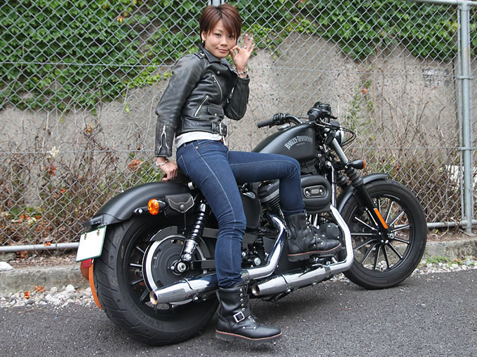 問題はブーツだな~。ボッテリしたデザインなので、女性が履くとまったくお洒落に見えない(涙)。バイクに乗るなら専用ブーツが一番運転しやすいのは分かる。だけどお洒落さは???と思っちゃうんですよね。私的にはピンヒールが女性らしさが出ていいけど、安全面ではそりゃ NG でしょう。もうこれは価値観の違いで、正解はありません。ヘルメットだってそう、安全面で言えばフルフェイスが良いに決まっているんだけど、一方で見かけるハーレー乗りが着用しているヘルメットってハーフサイズ (いわゆる半キャップ) が多いよね。安全性を優先すればファッション性は損なわれるし、お洒落なアパレルを選ぶと「安全性は?」って話になっちゃう。どちらを優先させるかは本人次第なんだけど、やっぱりハーレーダビッドソンというバイクを選んでいるんだから、ファッション性に長けたバイクライフを送って欲しいなぁ、と日々考える私です。