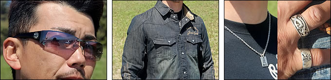 さて本題のファッションチェックですが、ヘアースタイルが“ビシッ!”と決まっていますね! ヘルメットで潰れないんですか? 私なんか“ワカメ”みたいにベターっとなっちゃいますよ(涙)。バイクに乗るときは“コテコテになりすぎない”ようにとのことですが、革チョッキや、スギちゃんみたいな袖なしGジャンのことを言っているんでしょうか?(笑) まぁ確かに、あのスタイルはお洒落なファッションとしてコメントできないですが、今回のファッションは街を歩いていても自然に見えるかな~?ただ、都心だとちょっとイカつく見えるかもしれませんね。かなり強面のアッキーさん、ヘアースタイルやサングラス、シルバーアクセサリー、そして袖に施されたフレームスのデザインが悪そうなイメージをより強めていらっしゃいますよね。