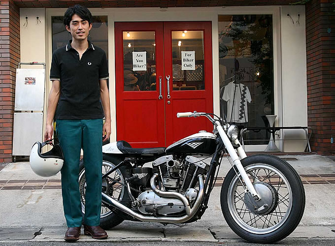 今回ご登場してくださった関さん、やはり目を引くのは愛車です! 1958年式 XLCH アイアンという車両そのものはもちろんですが、カスタムされたスタイルがまたすごい。これ、分かる方には分かるでしょう、神戸・元町のカスタムショップ「ACE MOTORCYCLE」でカスタムしたアイアンで、今年の NEW ORDER CHOPPER SHOW にも出展されたスグレモノでございます。