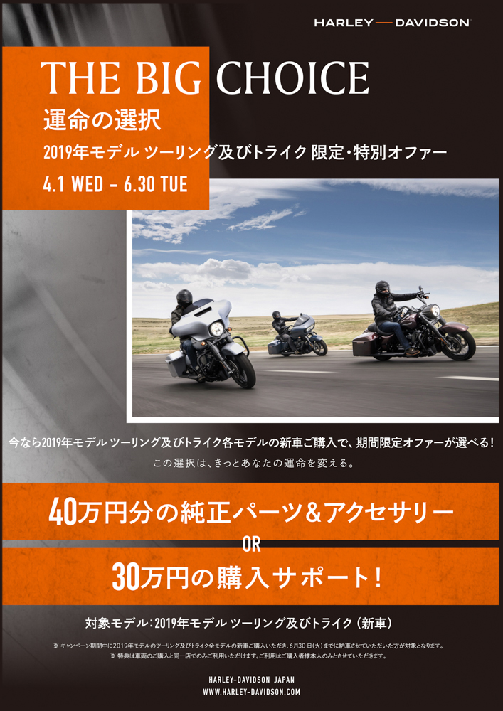 他のカテゴリーと比較した場合、ツーリングの最もわかりやすい特徴は、全モデルがロングランで重宝するサドルバッグを標準装備していること。ただし、実際のスタイルと乗り味は各車各様で、ベーシック仕様のエレクトラグライドスタンダードが、あらゆる面で親しみやすさを重視しているのに対して、上位機種のロードグライドリミテッドやウルトラリミテッドは、フェアリングやトップケース、オーディオ&ナビゲーション機能を統合したBOOM!™ Box GTSインフォテインメントシステムなどを標準装備することで、快適性と利便性を徹底追及。また、ヴィンテージスタイルのロードキングは、現代の技術で1960年代の雰囲気を再現したモデルで、車名にスペシャルが付くロードグライド/ストリートグライド/ロードキングの3機種は、近年のトレンドを取り入れたバガーカスタムとして仕上げられている。