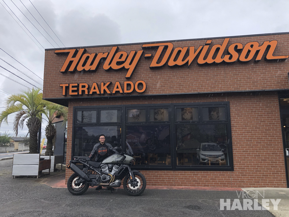 モニター車両のパンアメリカ スペシャルは、茨城県の正規ディーラー、ハーレーダビッドソン テラカドでの引き渡しとなった。ハーレーオーナーでもあるM.T.さんの行きつけのディーラーでもある。