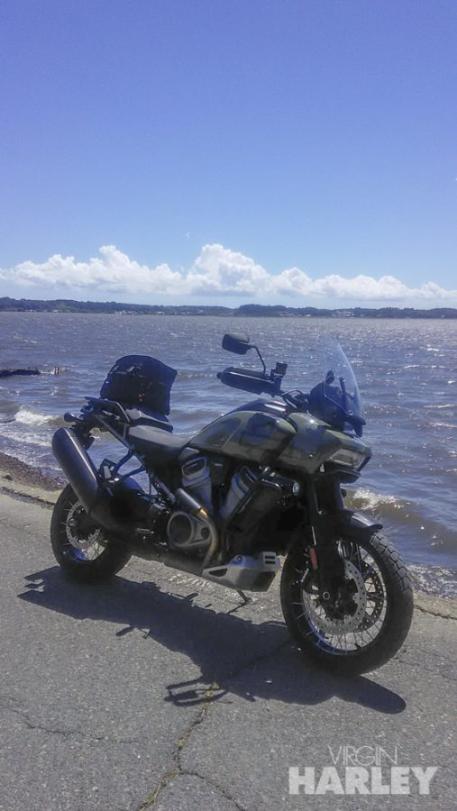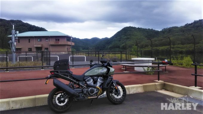 まずアドベンチャーバイクとなると最初に心配になるのは足つき性だと思います。ハーレーの多くはシート高が低く、そこに魅力を感じている人もいるでしょうから、シートの高いパンアメリカはどうなのだろうと考えてしまいます。しかしパンアメリカ スペシャルに装備されている自動サスペンション調整機構、ARH(アダプティブライドハイト)のおかげで、乗降時や停車中での足つきは良好でした。走っている最中はサスペンションの状況がディスプレイに表示されるのですが、とても自然であり、違和感を感じるようなものではなかったです。