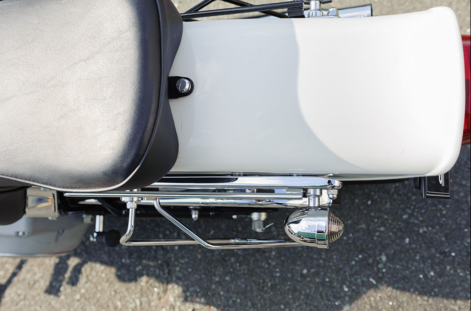 今や、ほとんどのハーレーオーナーが当たり前のように所有しているサドルバッグサポート&ハンガーをさらにブラッシュアップ。こだわり抜いたからこその自信と笑顔なのだろう。