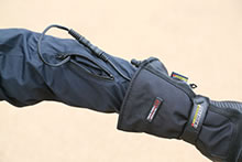 ジャケットの袖口には、グローブへ電源を供給するソケットを装備。アイテムごとに電源ハーネスを設置する必要がない。また、グローブを使用しない時は、ハーネスは専用ポケットに収納できる。
