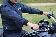 実際にバイクにまたがりライディングポジションをとると、ジャケットの袖は短めに作られていることが判る。これは、インナー専用品として設計されているためで、袖を短くすることで上着の袖先部分との干渉を防いでいるからだ。いくら暖かいとはいっても、アウターとして使用することは推奨できない。