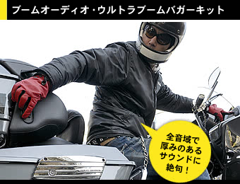 ブームオーディオ・バスブースター・ツアーパックポートキット ● 76000013 ……… 1万1600円 サブウーハーを使わずに低音域レスポンスを向上させるキット。このバスブースターは上で紹介しているブームオーディオ・ウルトラブームバガーキットにもセットされている。リアスピーカーとツアーパックの間にポートを設けることで、スピーカー容量を飛躍的に拡大。ツアーパックの収容力にもほとんど影響を与えない。響き渡る重低音がなんとも心地イイ! | ![]() |