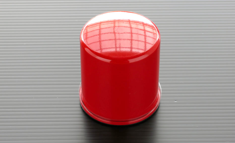 13鮮やかな赤とそのデザインは、カスタムパーツとしての存在感が抜群である。取り付けには工具がまったく必要ない。