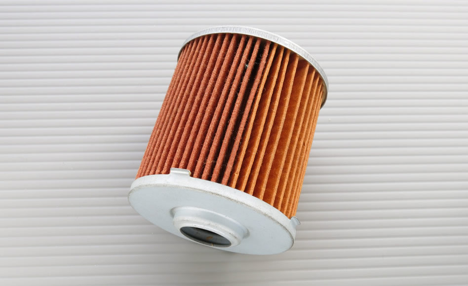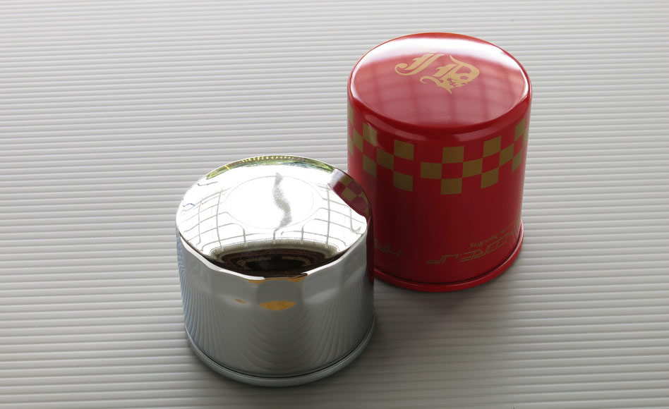 「表面の繊維が毛羽立っていては、その繊維が剥離してオイルの中に混ざりエンジン内部に回ってしまう。それではフィルターとしての意味がなくなってしまうから、毛羽立たちの少ない上質で均等な厚さの国産の濾材を使用しました。それでもわずかに残る繊維の毛羽立ちに対しては、特殊加工法で全て消滅させてからオイルフィルターの完成となります。また、フィルタ―本体のケースも無駄なレンチ用の造形を廃止し、圧力剛性の最も高い理想的な形状にしました。ケースの塗装も業界初、車体取り付け部分の内側まで塗ってあり、外観の向上とサビ対策をしています」