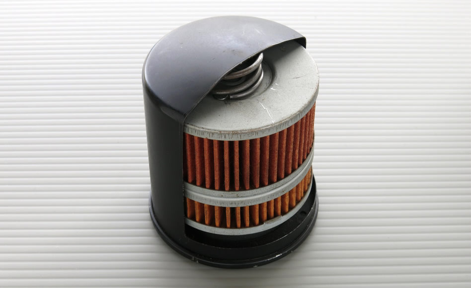 ハーレーダビッドソンエンジンにオイルフィルターが純正で装着されたのはパンヘッドの時代である。最初は分解して清掃できる構造だったが、エンジンの性能アップと共に、オイルフィルター本体も性能向上して、ショベルの後期には使い捨てタイプのカートリッジスタイルへと変貌を遂げた。