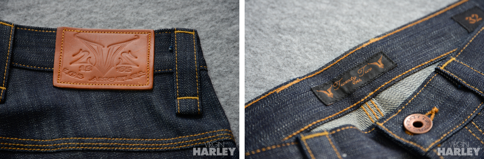 シンプルなシルエットのストレートもラインナップする。パッチにはV22LAのロゴをデザイン。クラシカルな製法の赤耳。ボタンはドーナツスタイルだ。「4万2,380円(税込)」