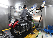 またマフラーのほか、エアクリーナーやインジェクションチューニングについてもパインバレーではすべてのメニューを揃えている。現在パインバレーで取り扱っているエアクリーナーのメーカーは、人気の高いS&SやH-D御用達のスクリーミンイーグル、勢いのある若きブランド ローランドサンズデザインの3種。このほかに、オーナーより要望があれば、別メーカー製品を取り寄せての取り付けも相談に乗っている。マフラーとエアクリーナーを換えたらモアパワーを引き出すためのチューニングが不可欠だが、店内にはアメリカから仕入れた完全防音室完備のシャーシダイナモを備えており、万全の体制でハーレーダビッドソンのパワーアップに尽力しているのだ。