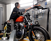 神奈川・本牧に居を構えるパインバレーの店内には、日本でここだけというアメリカ直輸入の完全防音室にシャーシダイナモが設置されており、ここからベストセッティングのハーレーダビッドソンが生み出されている。ちょっとした相談でも、秋山店長が気軽に応じてくれる。